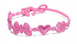 Tri najkrajšie priania na jednom náramku. Štvorlístok pre šťastie, srdiečko ako symbol lásky a motýľ vám prinesie a ponesie na svojich krídlach hojnosť.